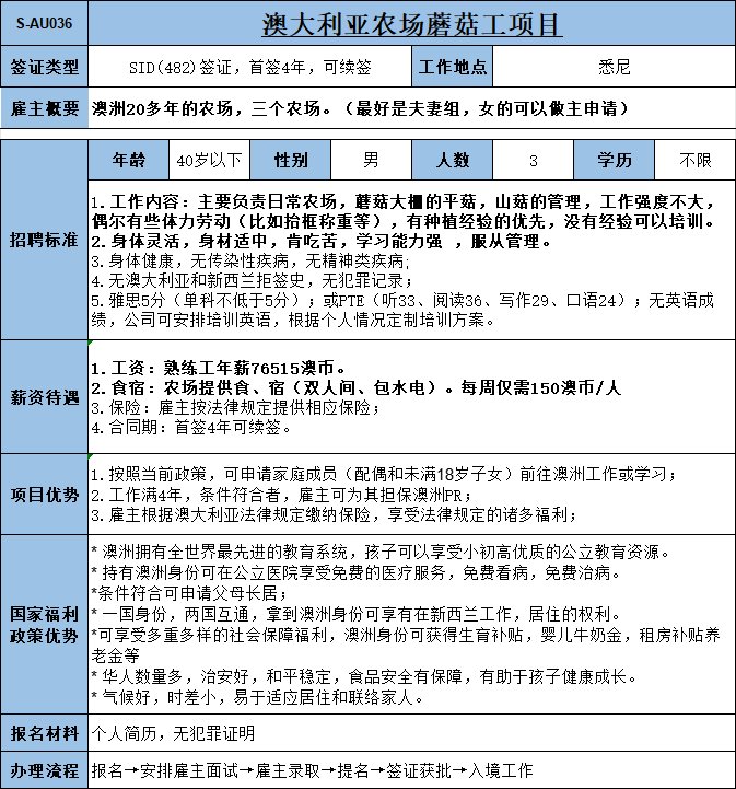 赴澳大利亞(悉尼)- 農(nóng)場蘑菇工