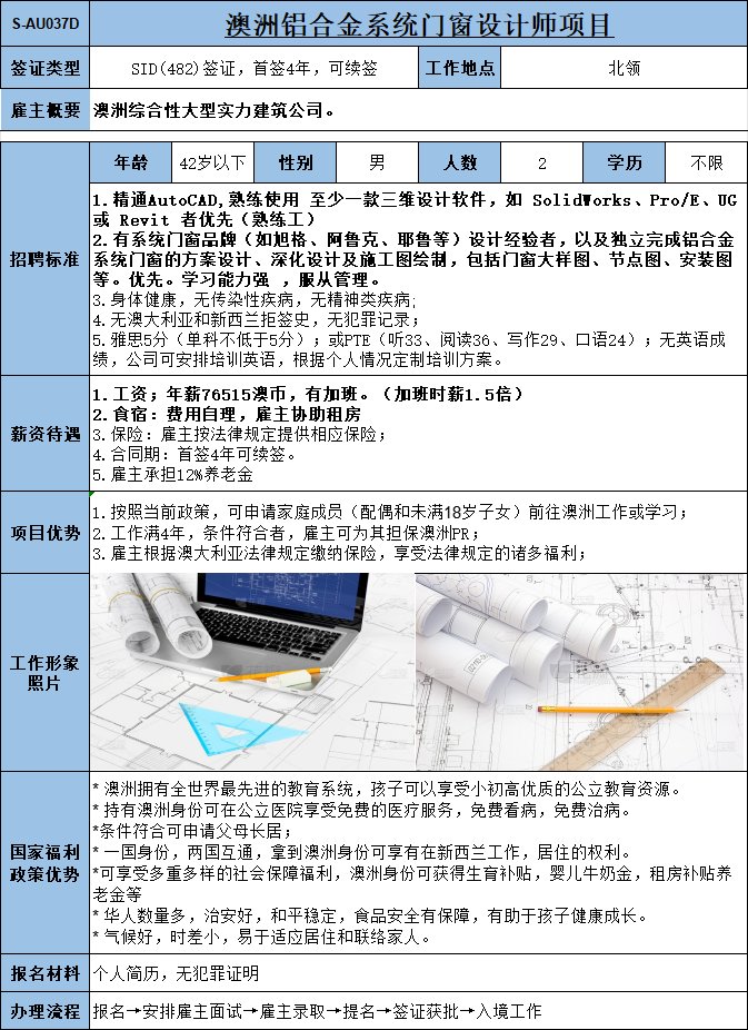 安裝鋁合金門窗,1年以上相關(guān)工作經(jīng)驗(yàn);年薪73150澳幣。